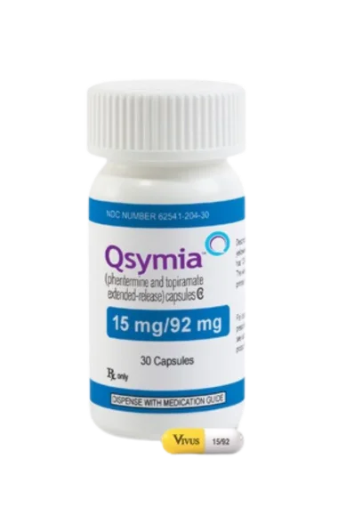 Qsymia (phentermine/topiramate extended-release) combines two active ingredients to target appetite and satiety. Phentermine, an appetite suppressant, reduces hunger, while topiramate, an anticonvulsant, enhances fullness and curbs cravings. Prescribed for adults with a BMI of 30+ (or 27+ with weight-related conditions like diabetes) and teens (12-17) with obesity, Qsymia promotes significant weight loss when paired with a reduced-calorie diet and exercise.